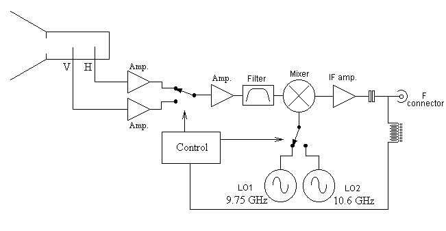 Di seguito lo schema a blocchi tipico di un normale LNB
